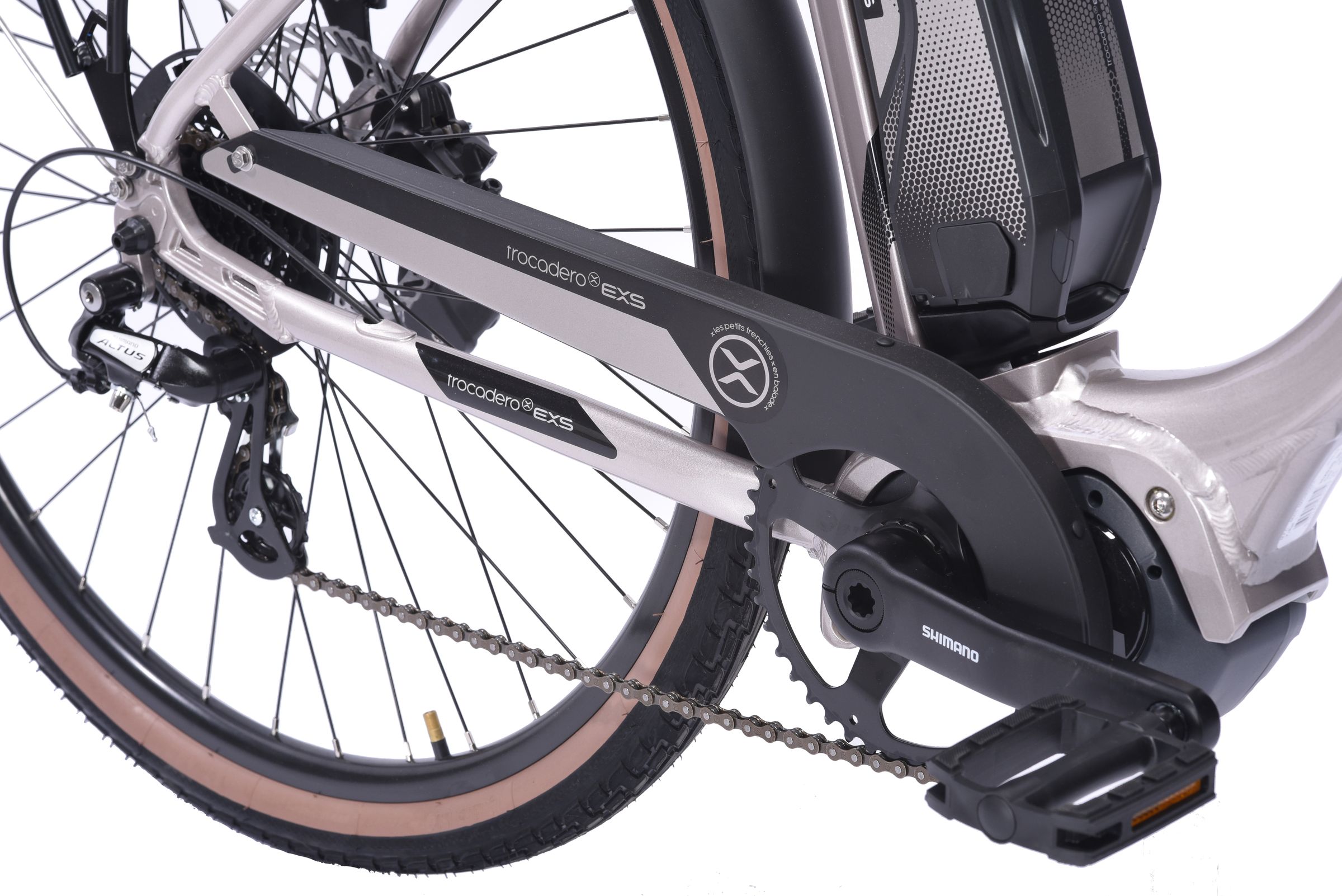 SECURITE :Le Trocadero est homologué aux normes Européennes, certificat d’homologation à l’appui. Le moteur se coupe dès que vous arrêtez de pédaler, la vitesse maximum est de 25 km. Au-delà le moteur se coupe. |