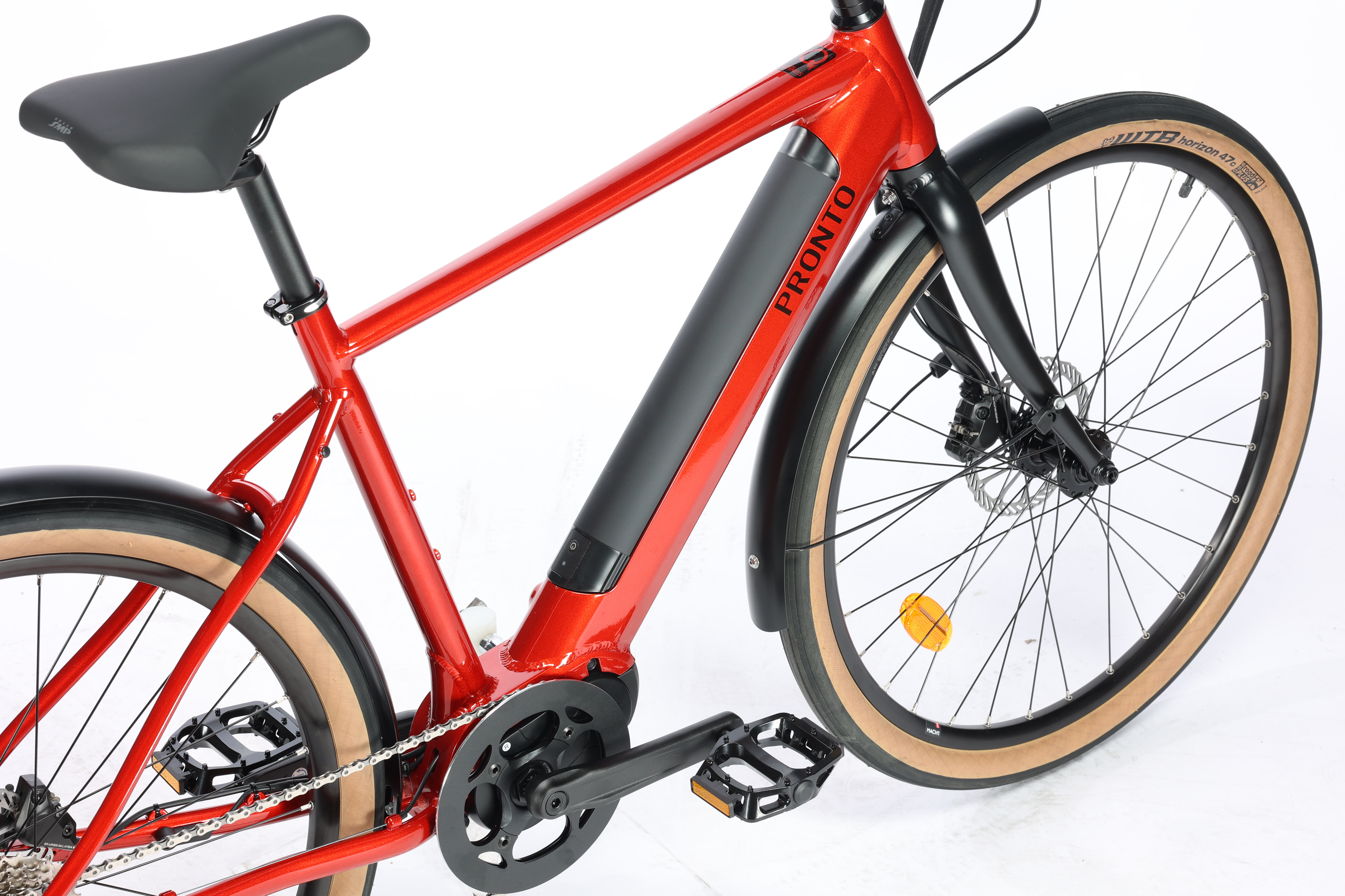 PERFORMANCE :Moteur 36V/ 80 Nm vous aidera à atteindre la vitesse maximum de 25 km/h. Son afficheur LED comprenant 5 niveaux vous permet d’optimiser l’assistance au pédalage et d’avancer sans trop d’effort aussi bien sur chemin que sur route. Pas d’entretien particulier. Le Q-BIKES PRONTO est équipé de freins à disques hydrauliques rendant son freinage puissant. |