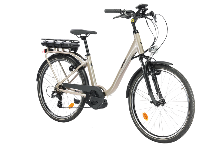 CONFORTABLE :Grace à son équipement complet : Garde boue, porte bagage, carter de chaine, béquille, éclairage à pile. Confortable grace à sa potence réglable en inclinaison. |